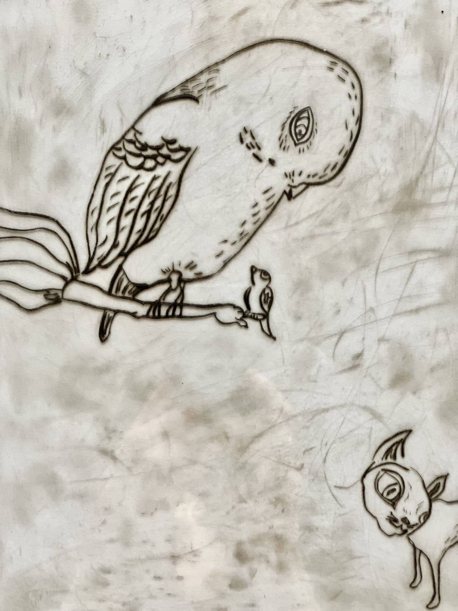 I det grafiske univers arbejder jeg med linoleumstryk, radering samt fotografering.