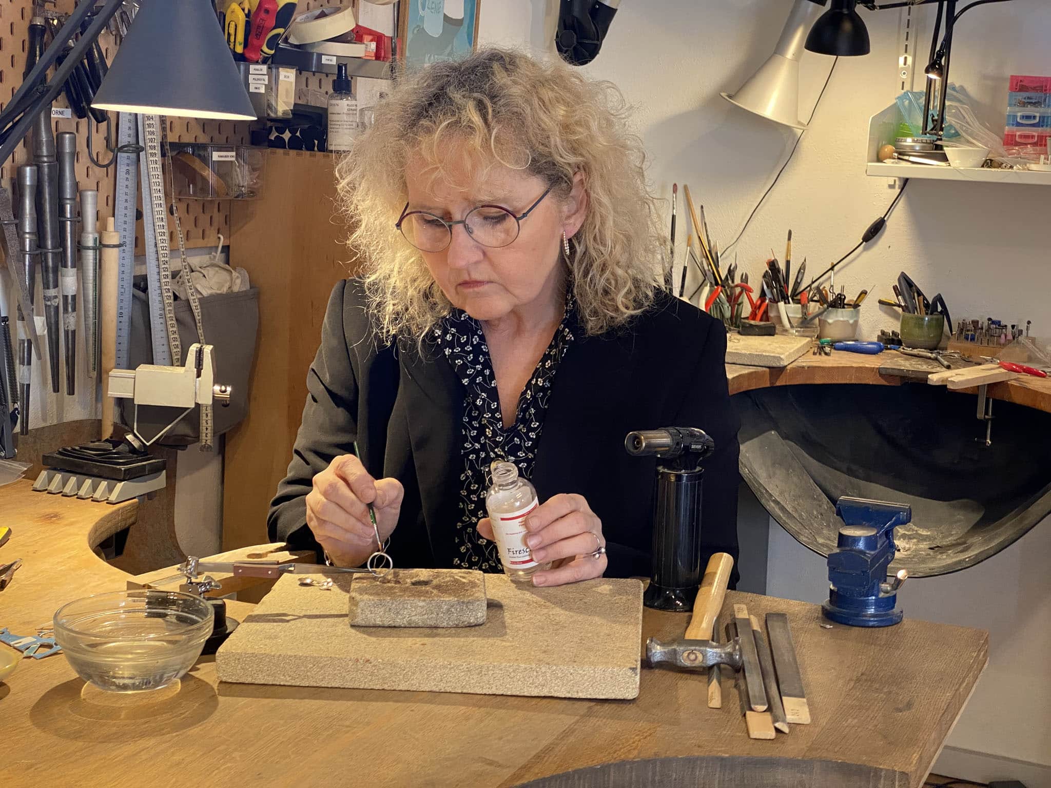 Jeg er også udøvende smykkemager og kan i mit eget værksted tilbyde kunder, special designede smykker -reparationer og smykkekurser.